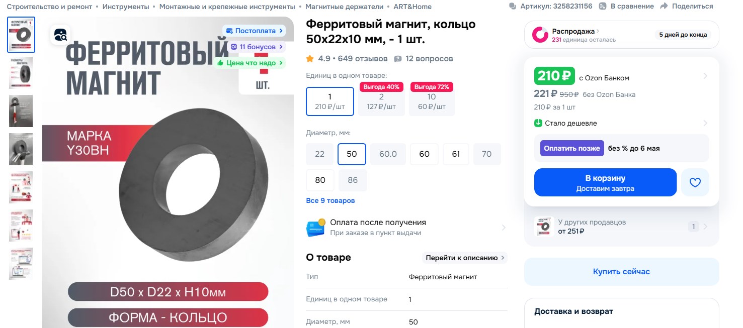 Нет, ты меня не обманешь. Попробуем отказаться от неодимового магнита в пользу старого доброго большого ферритового магнита!